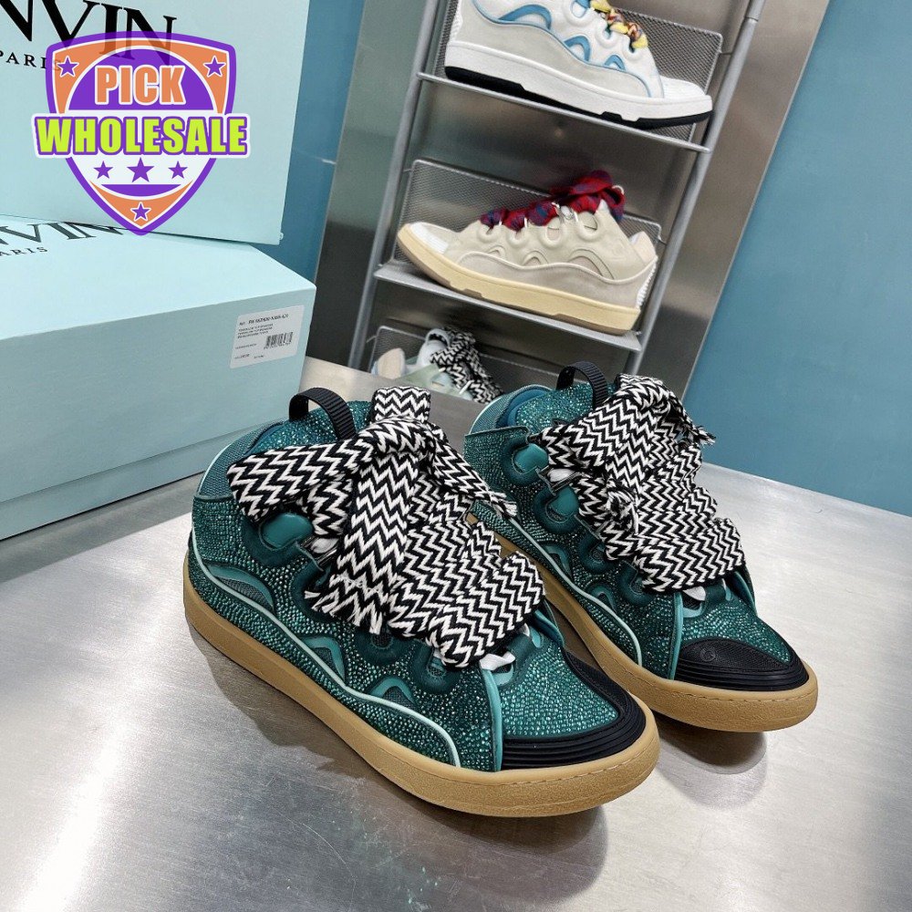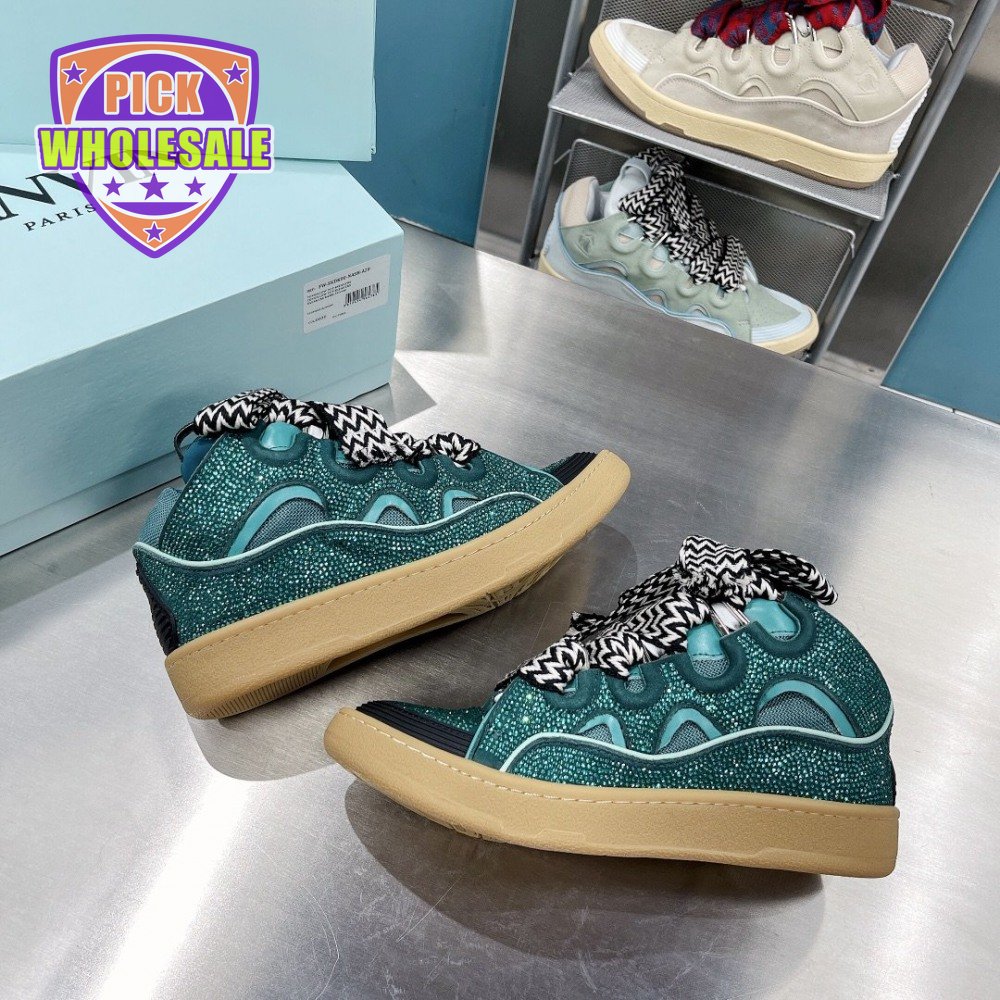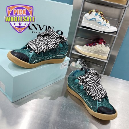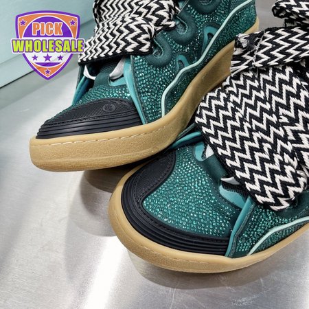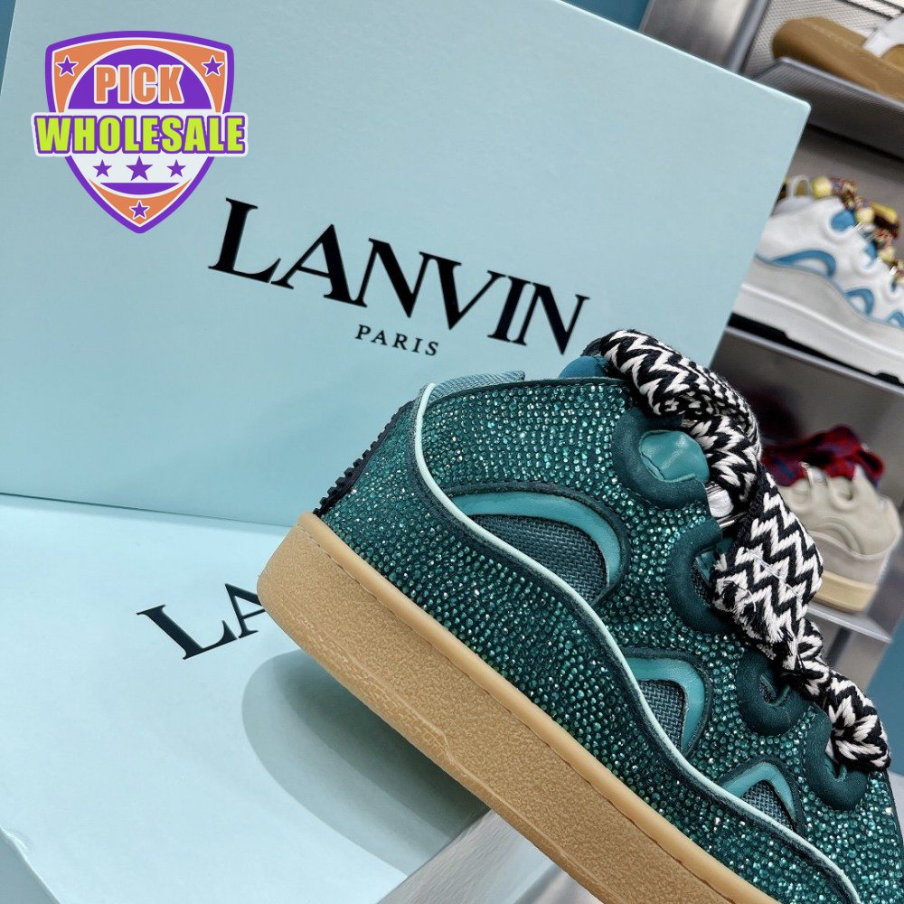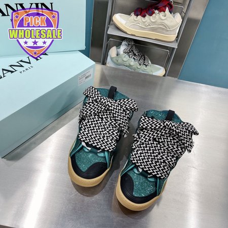 LANVIN Curb sneakers in Leather and strass navy blue STRA-H21281 35-45