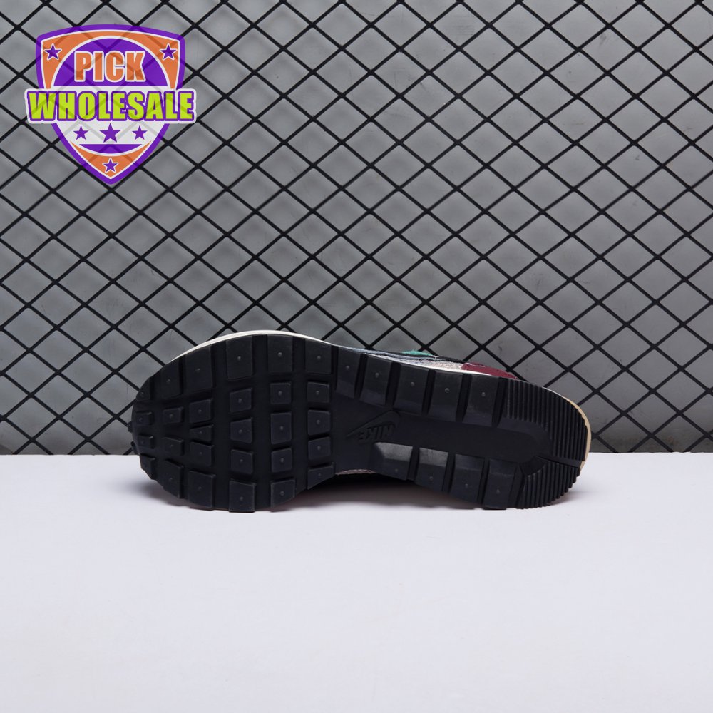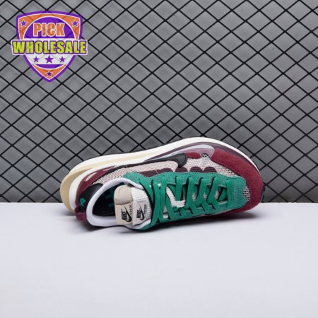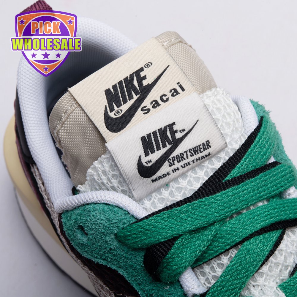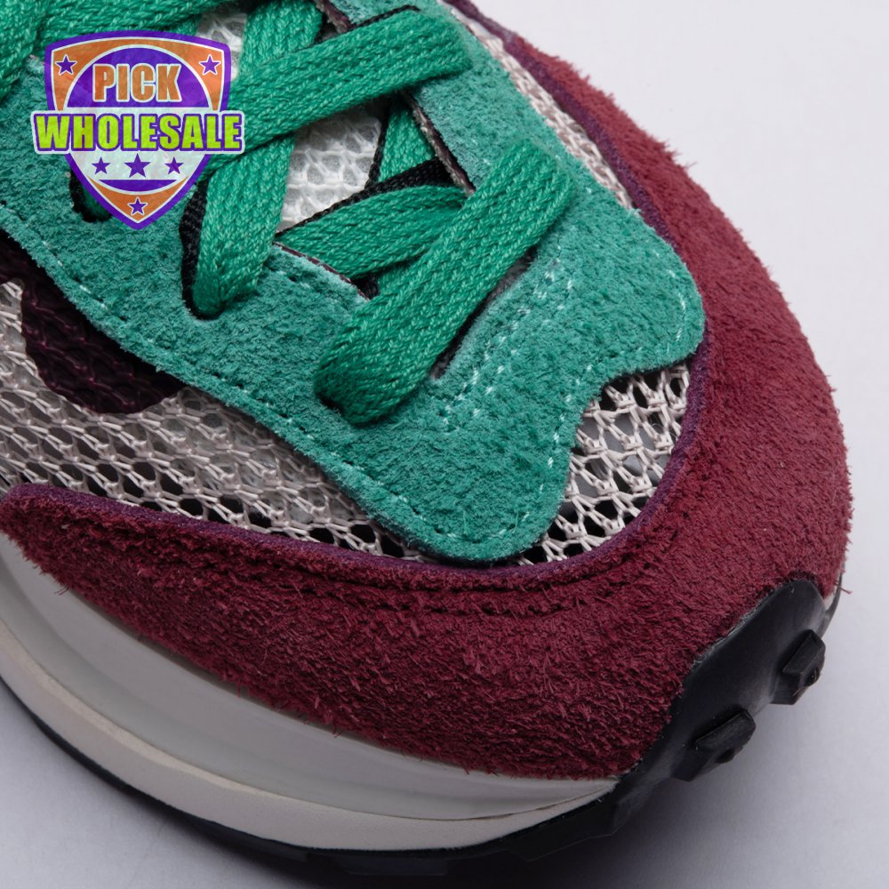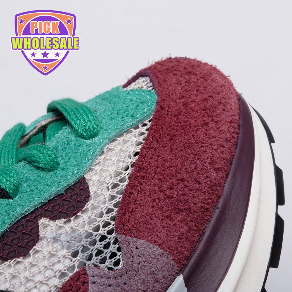 Made in partnership with the progressive Japanese fashion label, the Sacai x Nike VaporWaffle SP "Villain Red" shows off a layered design that recalls the brands" original LDV Waffle collaboration from 2019. The sneaker"s khaki mesh upper, accented with burgundy suede overlays and a green suede eyestay, doubles up on the tongue, laces and Nike Swoosh branding. An off-white finish is applied to the stacked midsole, featuring a wedge insert that literally splits the heel.